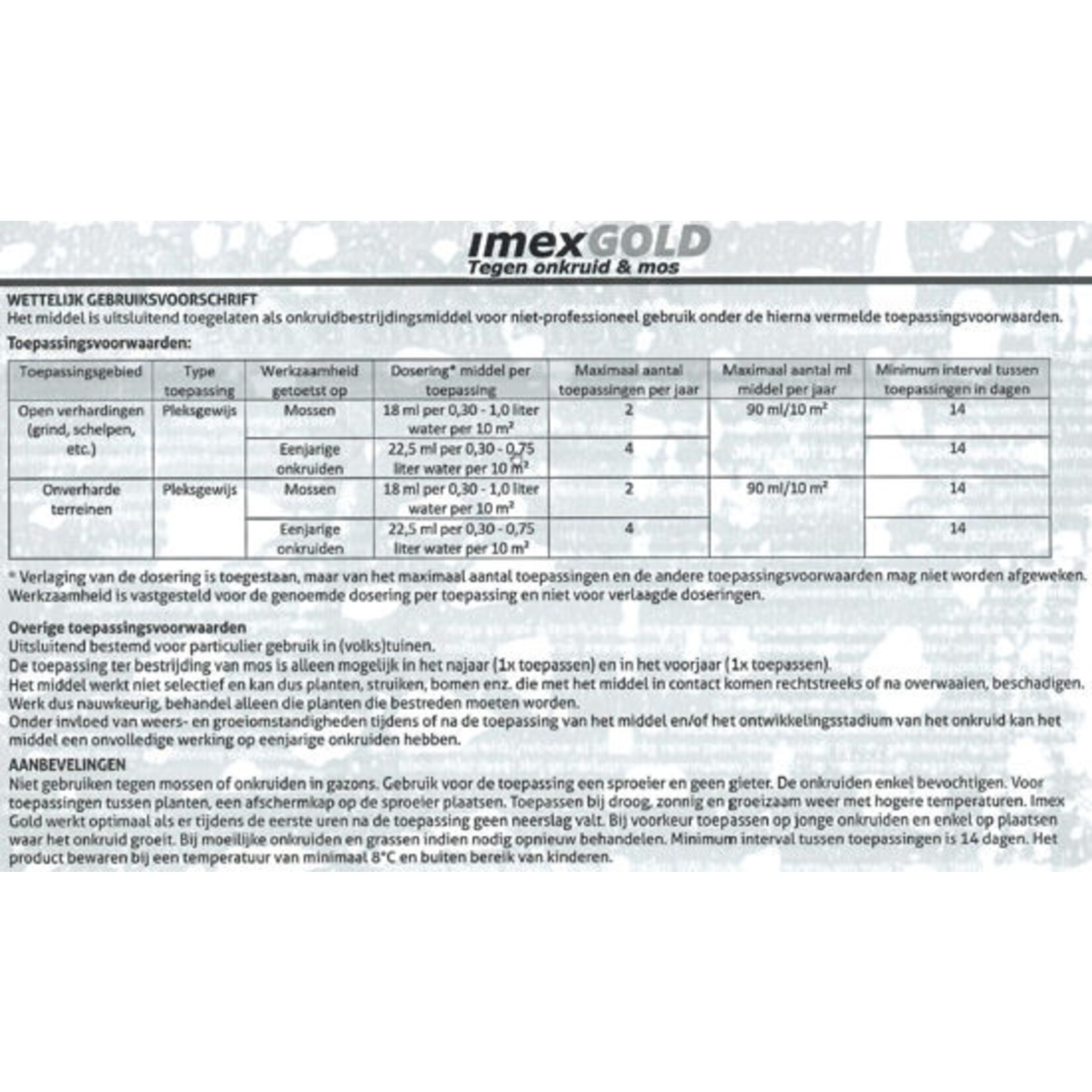 Dosering mossen: 18 ml product + 1000ml water voor 10m2.